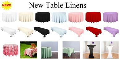 ASSORTMENT OF TABLE LINEN FOR RENT . PRICES START AT $9 for rental.